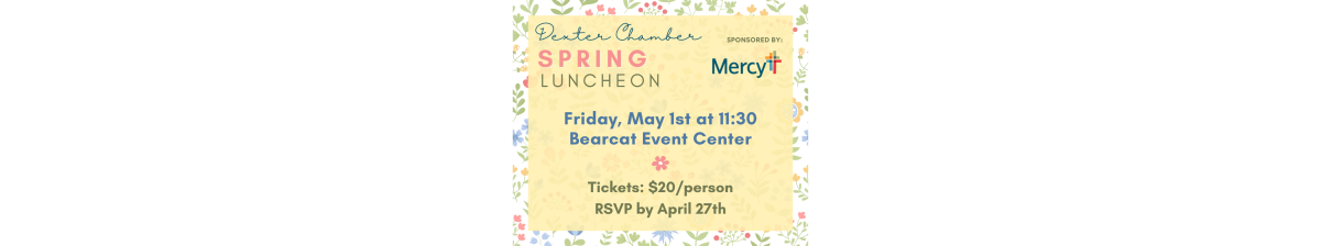 The Dexter Chamber's Annual Spring Luncheon will be taking place on Friday, May 1st at 11:30 at the Bearcat Event Center!